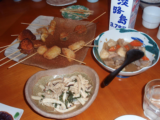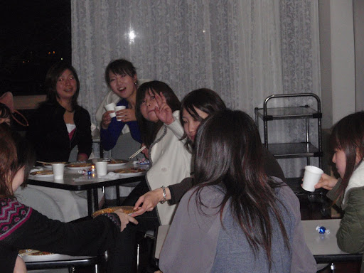 On Tuesday I was at a little Christmas celebration of the German Language course (also in one of the next entries: how I got into that course). In any case the second teacher of the course is an Austrian from Bruck an der Mur (Name: Stefan Trummer), the only one I can really speak in a normal manner with, simly in good Austrian. For that reason we arranged the party in a little Austrian fashion, with permission of the "main" teacher, to show the participants how a piece of traditional Christmas looks like, without commerce, commercialism and American kitsch ("American" since in Japan Christmas came for the most part from the US, but we ourselves produce more than enough kitsch). Hence we told them stories about Christmas, where it comes from, "Christkind" instead of Santa Claus, that celebtration is on the eve of the 24th, who is Saint Nicholas etc. and afterwards Trummer-sensei performed a few traditionell carols (as my friends know. I have a hideous singing voice) and the highlight of the evening: The two of us brewed a small pot of hot spiced wine. Since he obtained the ingredients from Austria it was a real original one. The hot spiced wine was well recieved especially with the Japanese professor (he has already been to Graz several times and discovered his love for it there) and with the girl with roots from Ukraine. She would have drunken all of it by herself, for of course we had way too less of it. Like all Japanese celebrations this one also ended on schedule at a predetermined time, regardless for me it was above all a piece of real Christmas.