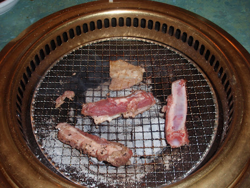 To round off the weekend in the weekend I went to eat Yakiniku (literal: roasted/grilled meat) with the Briton Simon too. For this you get the food (80% meat therefor) served raw and flavoured, which then you grill by yourself via an in the table board embedded grill. Exceedingly tasty and not even that expensive in the right restaurants.