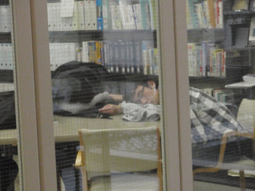 Correspondingly, many students make use of possible free periods to treat themselves to a little sleep, like one might notice on the following photo. To the author this is greatly reminiscent of the time of his basic training at the Austrian Army, at which the soldiers too used every free minute to at least doze.